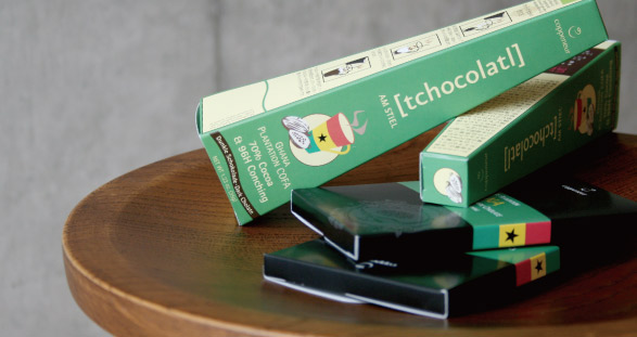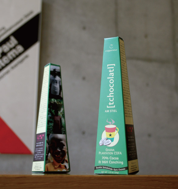 ドイツのチョコレートメーカー、コップナーの限定商品のパッケージとリーフレットをデザイン。ガーナプロジェクトから生まれた限定商品のパッケージは、既存イメージや素材は残しガーナ国旗をキービジュアルとしたカラーリングでリデザインした。