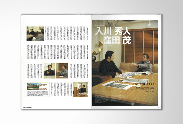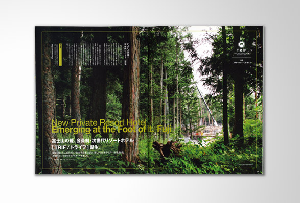 エムディエヌコーポレーションから出版されたムック「meuble」のコンテンツとして、4号にわたりリゾートホテル「TRIF」の構想から誕生までを追った連載ページを制作。