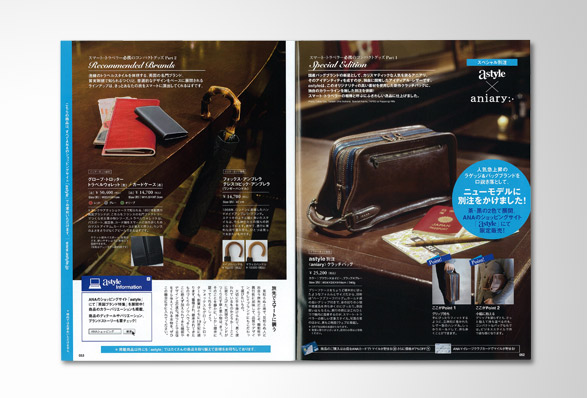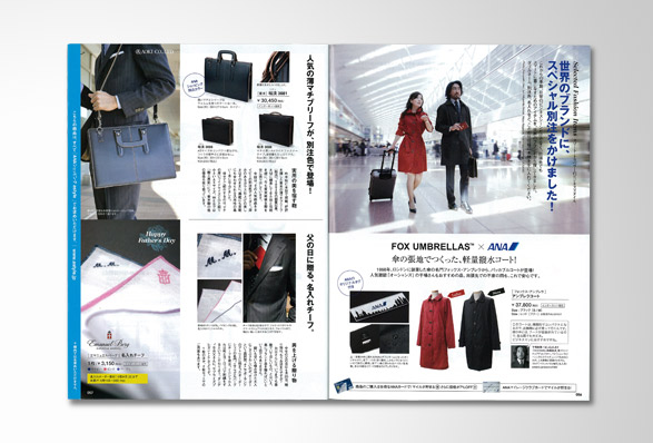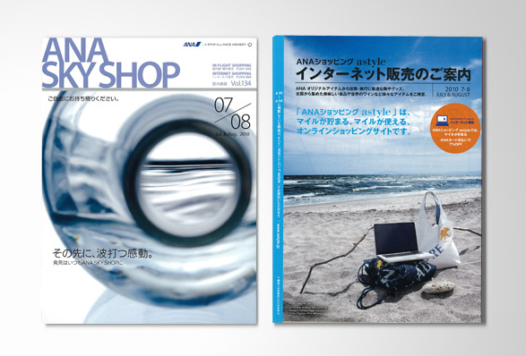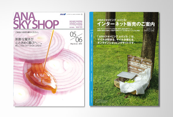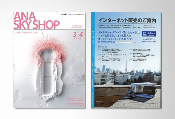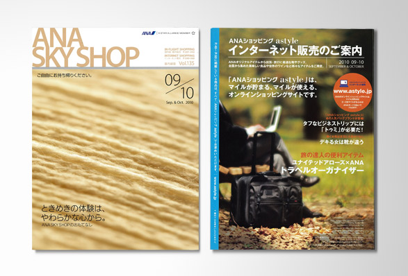 ANAの機内誌「ANA SKYSHOP」の巻末にあるインターネット通販ページのリニューアルデザイン。編集チームを組み、ディレクションとデザインを担当。ファッション誌のようにモデルや著名人を起用しての商品紹介や、季節感、商品の持つ世界観を誌面で表現した。