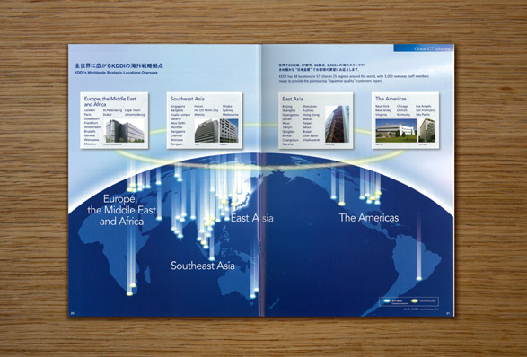 ネットワーク・情報のスピード感、グローバル企業での展開をコンセプトにデザイン立案。デザインマテリアルの開発からアートディレクション、誌面デザインを手掛けた。