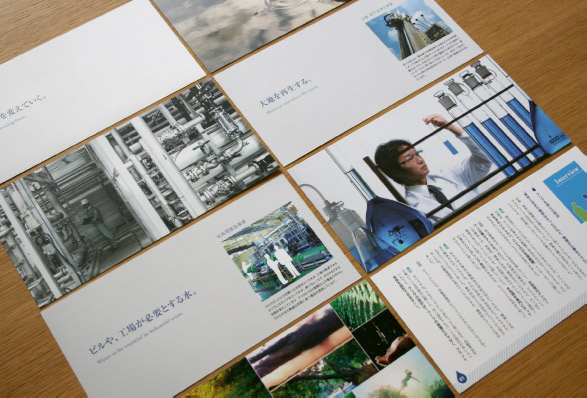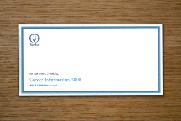 水と環境の先進的マネジメント企業「栗田工業株式会社」の新卒採用案内のDMとリクルート用の採用情報の冊子を開発。表と裏からなるカードには栗田工業の事業紹介や先輩社員によるインタビューを掲載し、2008年度のリクルートブックとした。