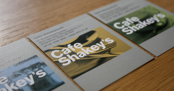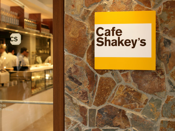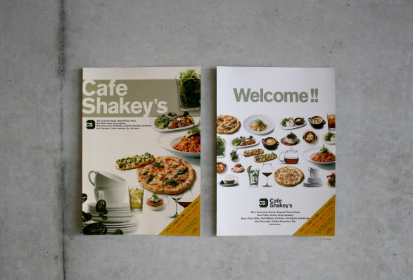 シェーキーズの新業態「カフェ シェーキーズ」。コミュニケーションデザイン全般を担当。仮囲いを使ったオープン告知プロモーションから、ロゴ、アプリケーションツール(ノベルティー、ショップカードなど)、メニューやユニフォーム、プロモーションなどのデザインを手掛けた。