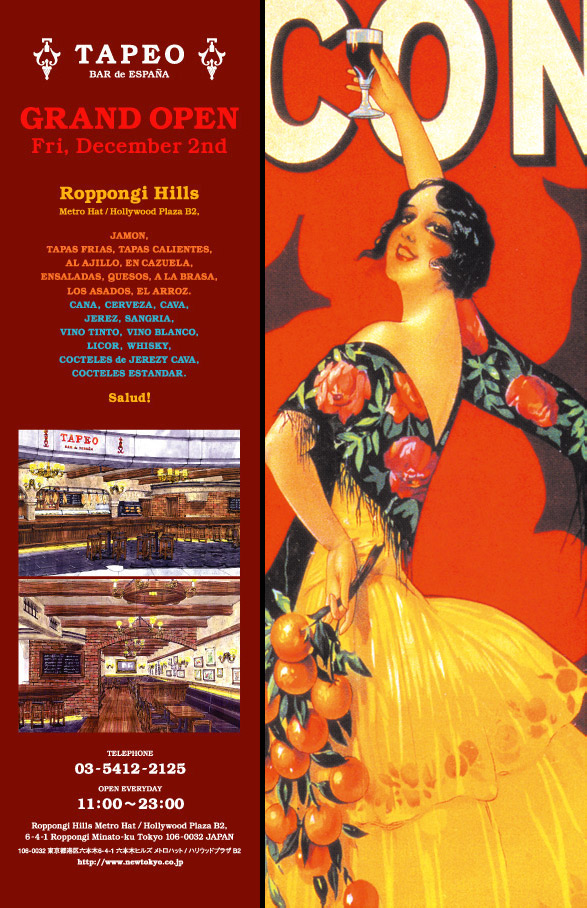 六本木ヒルズにあるスペインバル。ロゴからアプリケーションツール、メニュー、プロモーションツールなどのデザインを手掛けた。