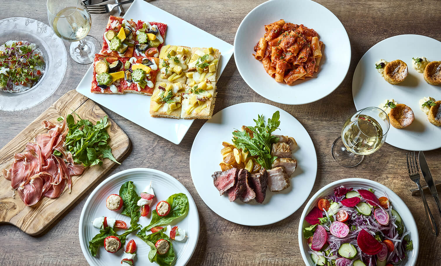 ピッツェリア・チーズファクトリー・ジェラートショップの空間デザインやグラフィックの制作、メニューやポスター等のコミュニケーションツールのデザインを担当いたしました。