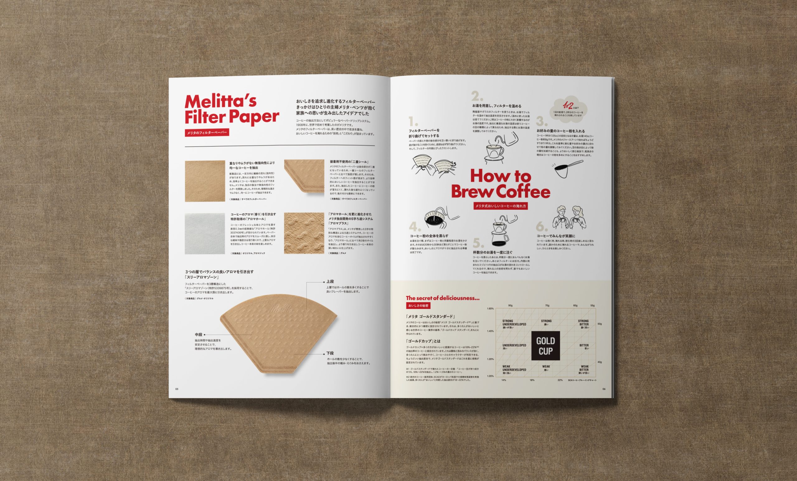 A4サイズ、全16ページにわたり、Melittaの歴史から美味しいコーヒーの淹れ方まで、ボリュームのある内容となっています。