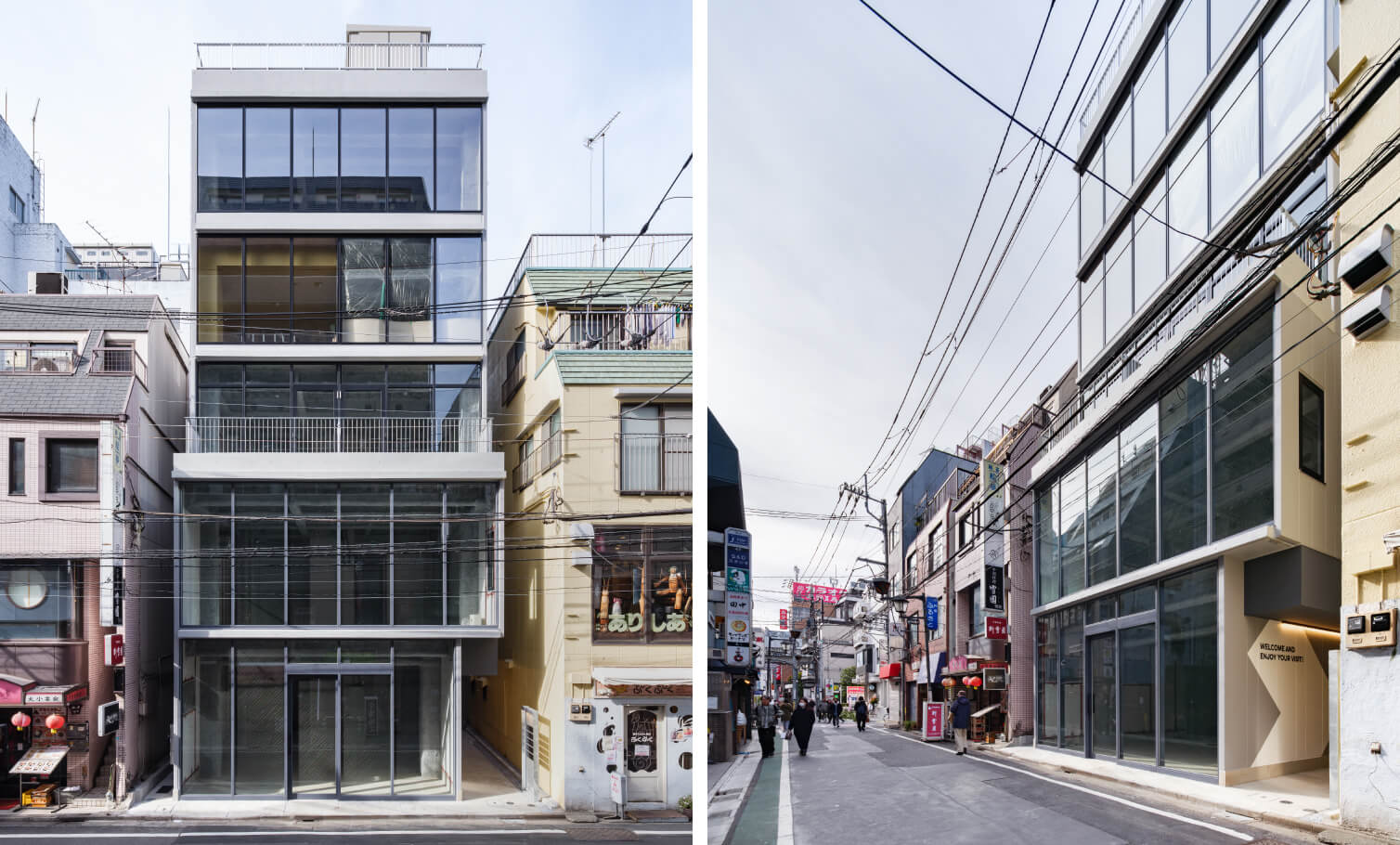 Degins JPが設計を手がけた、下北沢駅近くの賑わいある飲食街に立地するテナントビル計画。本プロジェクトでは、エントランス周辺の壁面グラフィックおよびサイン計画を担当しました。アプローチに面した壁にはペイントによるグラフィックサインを施し、通りを行き交う人々の視線を引きつけるアイキャッチとして機能。街の空気感に呼応する、ポップで活気のある表情を創出しています。